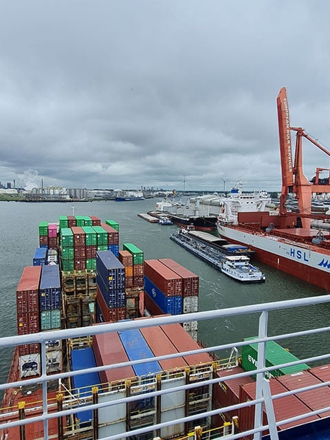 “De reis zit erop en we gaan terug naar de Pistoolhaven. Met de loods spreek ik de reis nog even na. Een leuke reis, met veel leerzame momenten. Vervolgens snel terug naar huis om verder te gaan met mijn scriptie”